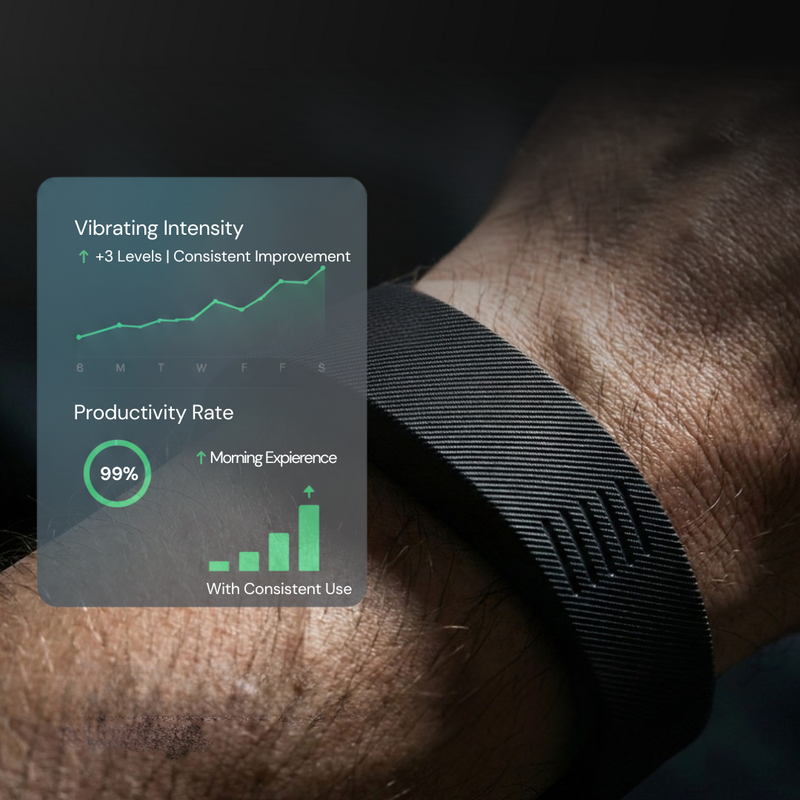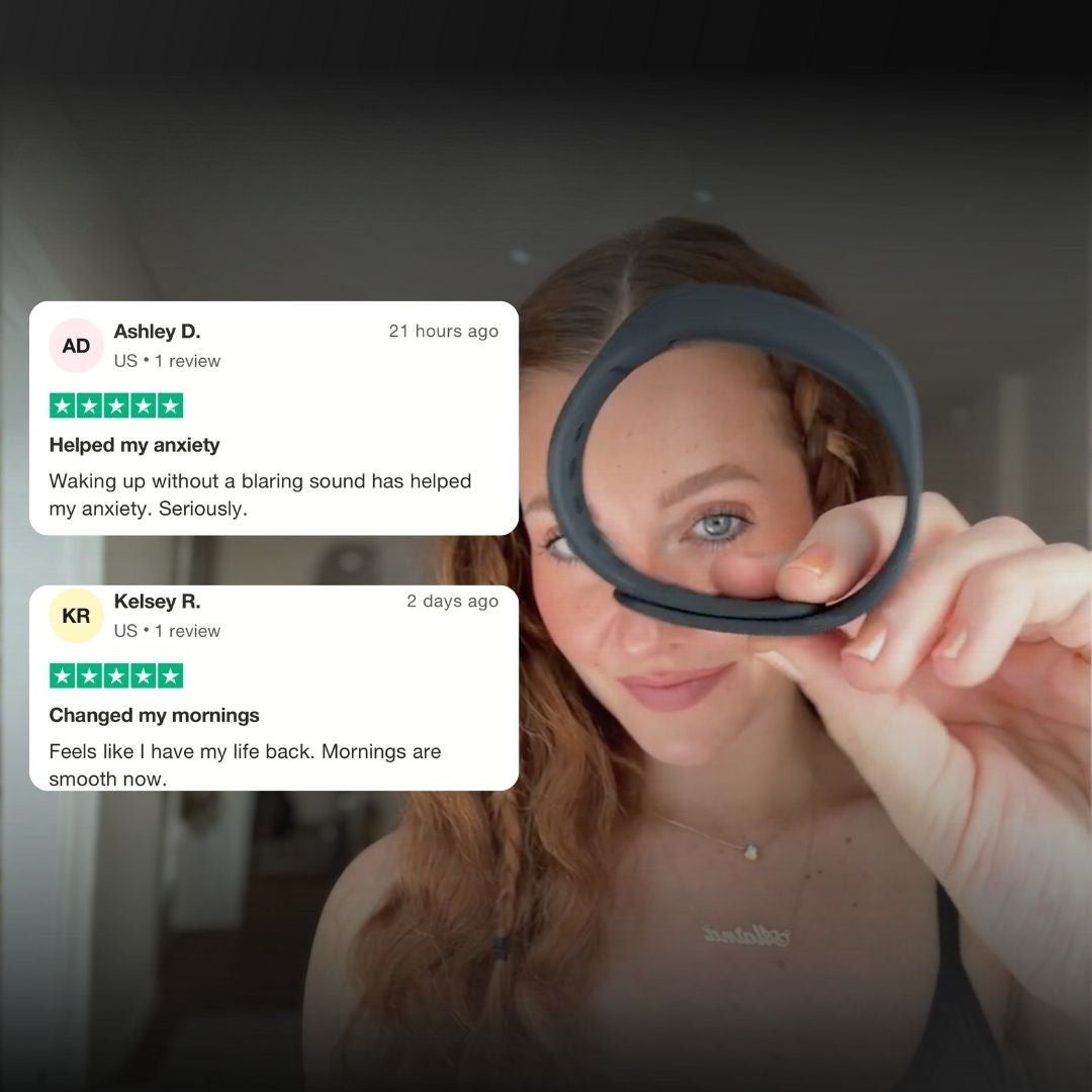 Sound alarms wake the entire room and spike your cortisol from the moment you open your eyes. This wakes only you — through gentle vibration your brain can't ignore, even if you're a heavy sleeper.