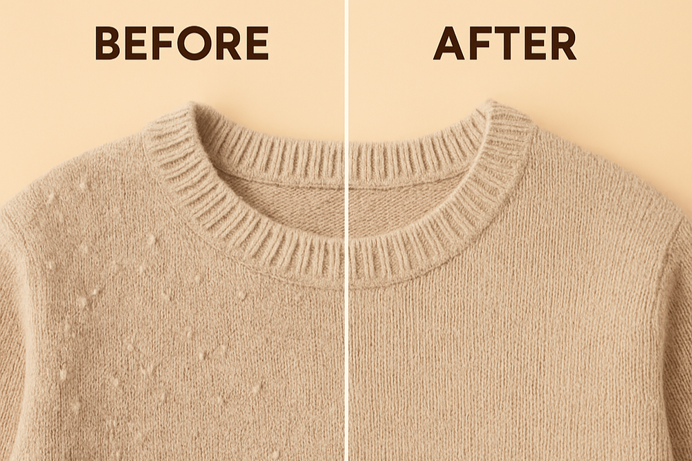 The SoftStylist™ is designed to cut and capture any loose fabrics from your clothes.